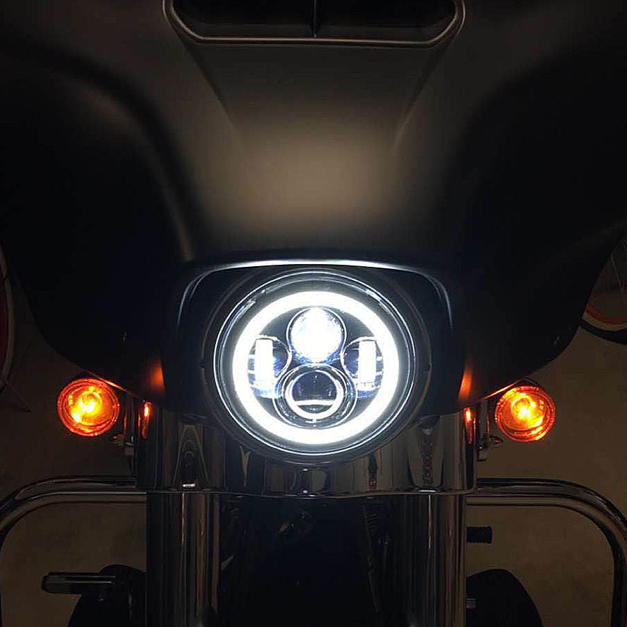Brighter. Clearer. Safer! Light up the road ahead with our 7" Chrome LED Halomaker. Increase visibility, safety, and style with a pure white, road tested projection LED setup with the addition of our popular DRL Halo Ring. Plug & Play on '94-'13 Touring Models. Simply add our Wire Harness Adapter (HW131132) to make this Plug & Play for '14-'21 Touring Models.