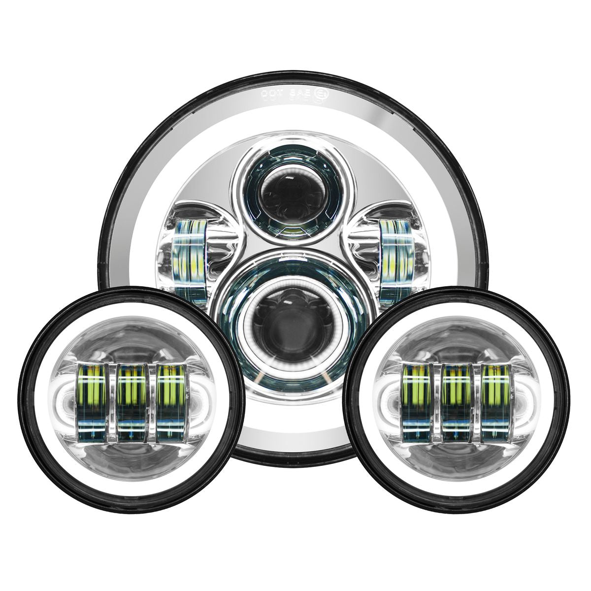 7" Chrome LED Halomaker Headlight w/ 4.5" Auxiliary Halo Passing Lamps Kit