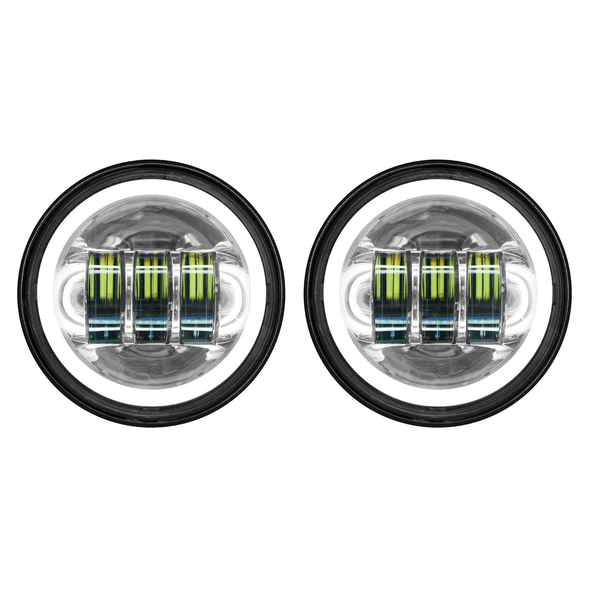 Brighter. Clearer. Safer! Light up the road ahead with our Chrome LED HaloMaker Headlight with 4.5" Halo Auxiliary Passing Lamps. This package will get you noticed. Increase visibility, safety, and style with a pure white, road tested projection LED setup with the addition of our popular DRL Halo Ring. Plug & Play on '94-'21 Touring Models. This package includes everything you need!