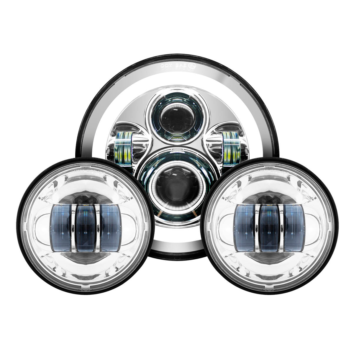 7" Chrome LED Halomaker Headlight w/ 4.5" Auxiliary Passing Lamps Kit