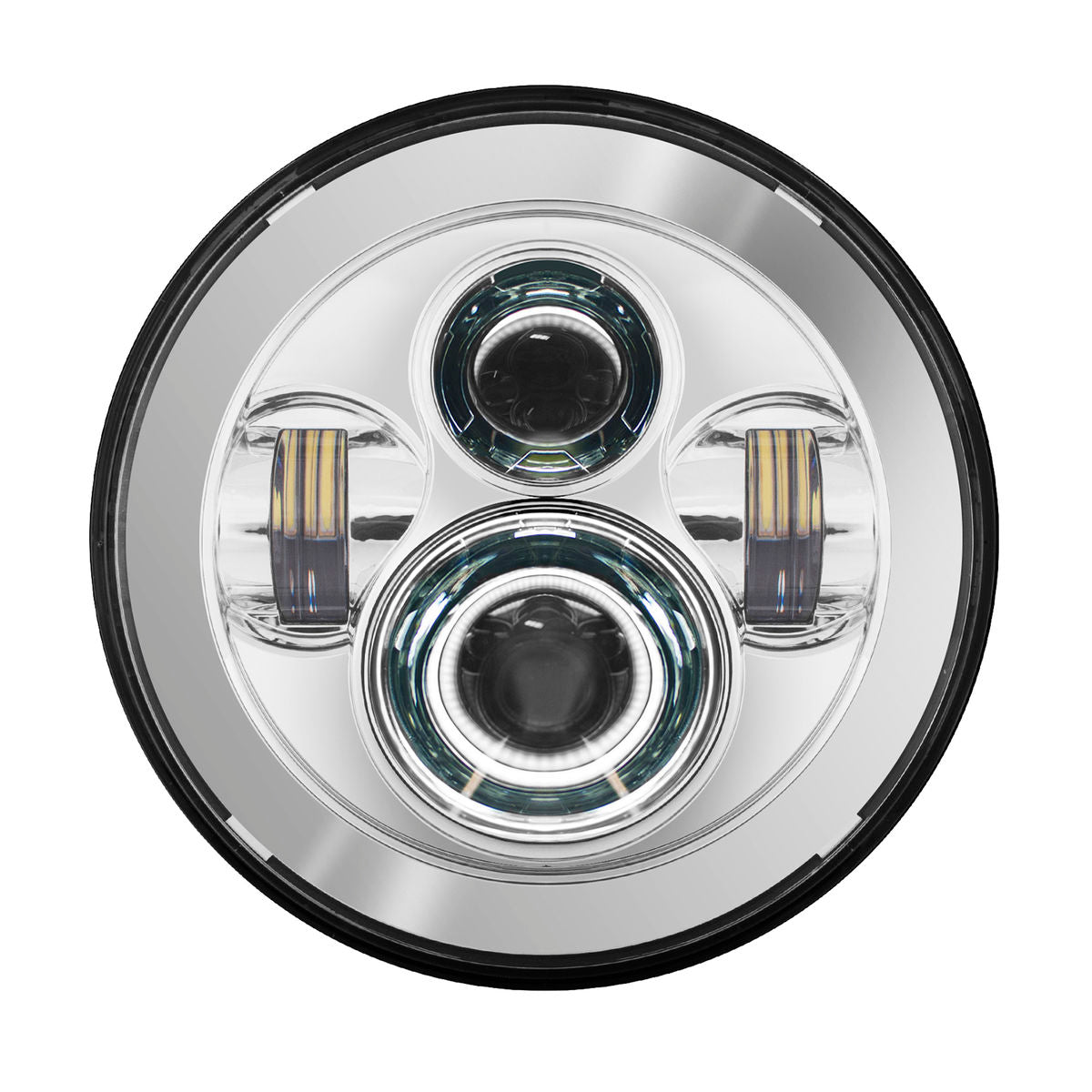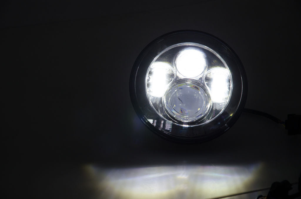 Headlight Type: 7" Round Max Power: 45 W LED LED Chip Quantity: 9 (OSRAM/CREE) Voltage: DC12V/24V High Beam: 5400 LM (@38W) Low Beam: 3600 LM (@27W)
