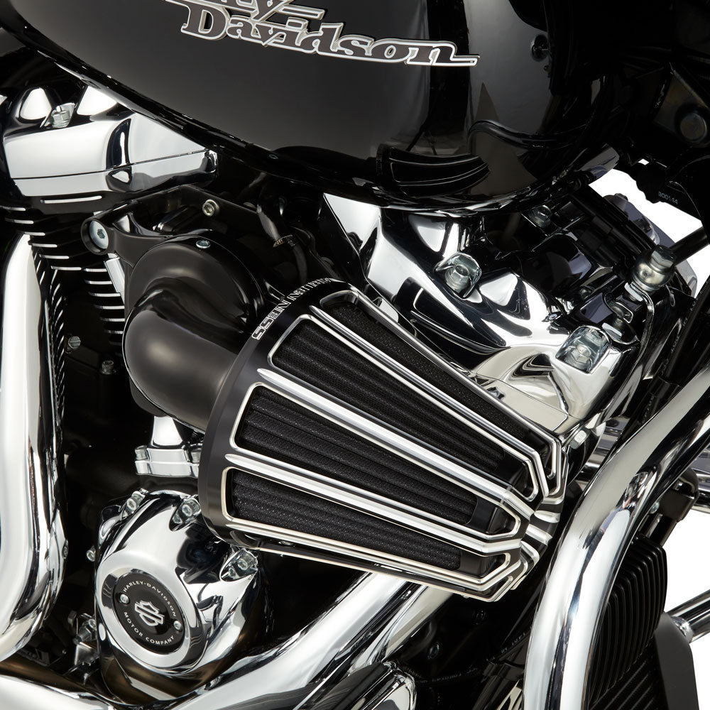 - Filter features a built-in inverted top to pull in air not only from all sides of the filter but also from the front, which results in more performance-gaining airflow